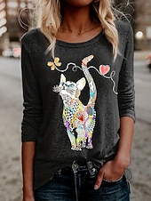 More information about Women's T shirt Long Sleeve Floral Graphic Cat Vintage Stylish Classic Long Sleeve Crew Neck Regular Tops Daily Print Black Blue Green Spring Fall Prefall