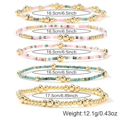 5Pcs 14K Gold Plated Beaded Bracelets Stack Set for Women,Stretch Boho Colorful Beads Ball Jewelry Friendship Summer Trendy Christmas Day 5