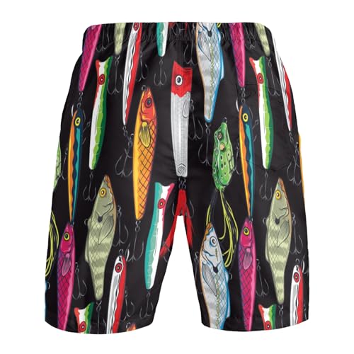 Colorful Fishing Lures Men's Swim Trunks Beach Shorts with Pockets Athletic Pant S 1