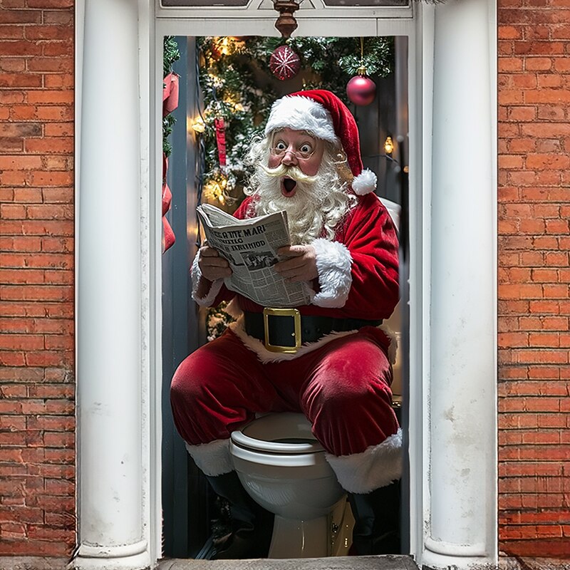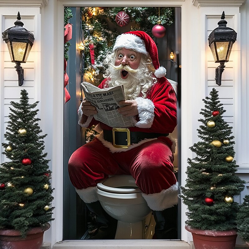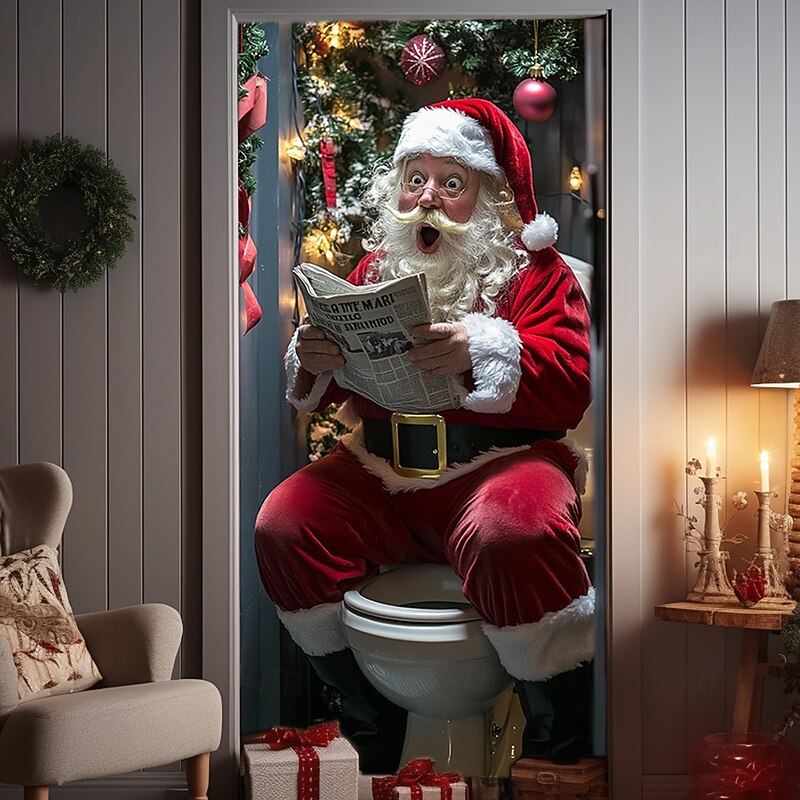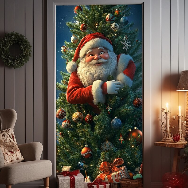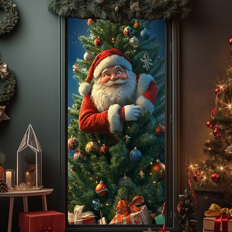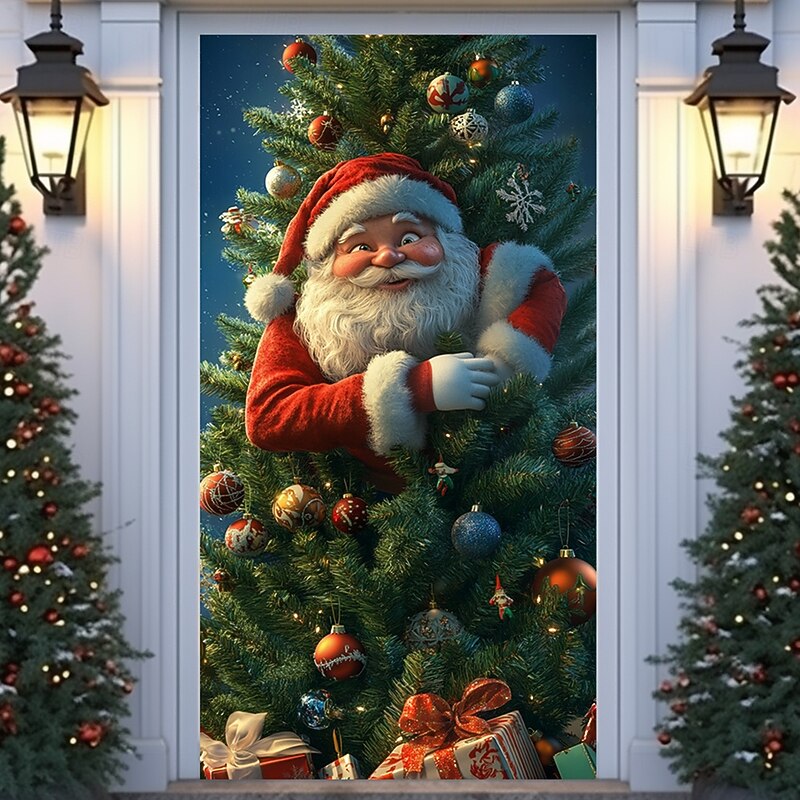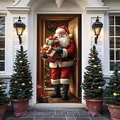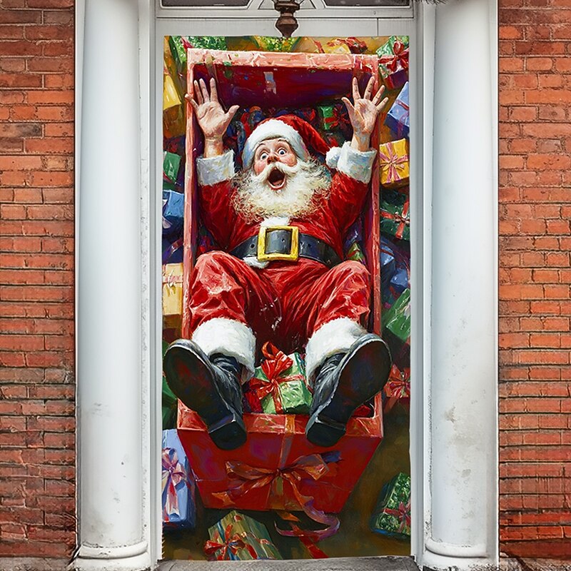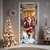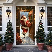 HOT ! Christmas Door Decorations Door Covers Santa Claus Xmas Gifts Door Tapestry Door Curtain Decoration Backdrop Indoor/Outdoor Door Banner for Front Door Farmhouse