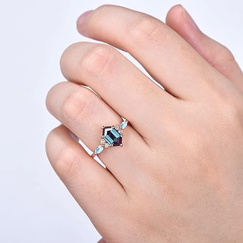 More information about Vintage Alexandrite Engagement Ring, Elongated Hexagon Cut - 4.87 Carat, Cluster Moonstone Ring Unique June Birthstone Promise Wedding Ring, Solitaire Alexandrite Bridal Ring, Art Deco Statement Ring For Anniversary Ring with Gift Box {BL-AL-60}