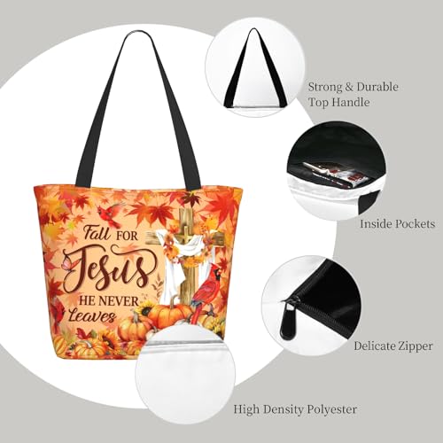 • Orange Fall Tote Bags Bible Tote Bags For Women Large Shoulder Bag: Birthday Gifts For Women Dimensions With 13 X 11 X 7 Inches, Tote Bag With Zipper Design. The Bags Are Made With Dense Thread And Exquisite Workmanship. All Seams Are Reinforced And Sewn To Ensure Their Durability. Autumn Tote Bag.