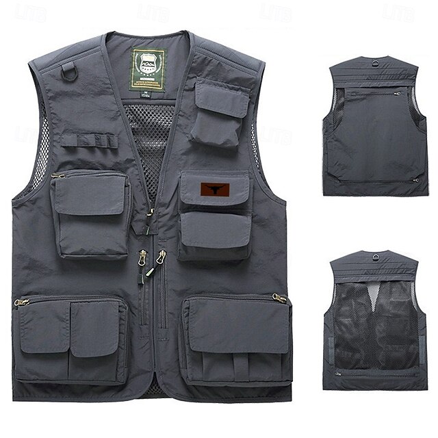 More information about Men's Cow Print Vest Gilet Fishing Vest Tactical Practical Casual Photography Camping & Hiking Hunting Quick Dry Multiple Pockets Fishing Vest with Removable Mesh Back Fall Winter Collarless