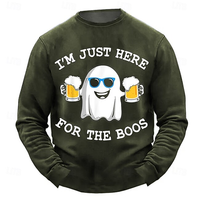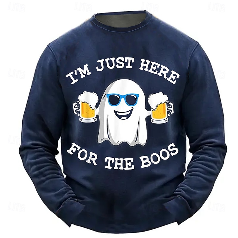 More information about Mens Long Sleeve Halloween Sweatshirt: I'm Just Here For The Boos Funny Ghost Beer Pun