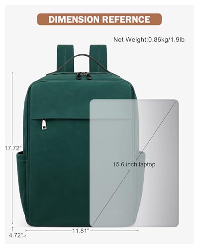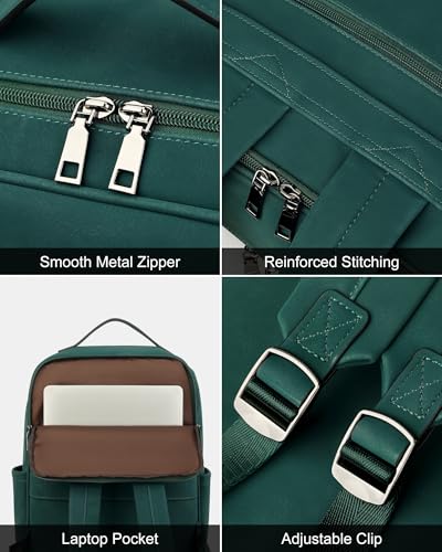 MASINTOR 15.6 inch PU Leather Laptop Backpack Purse for Women, Large College Casual Backpack Travel Bag Retro Green 6