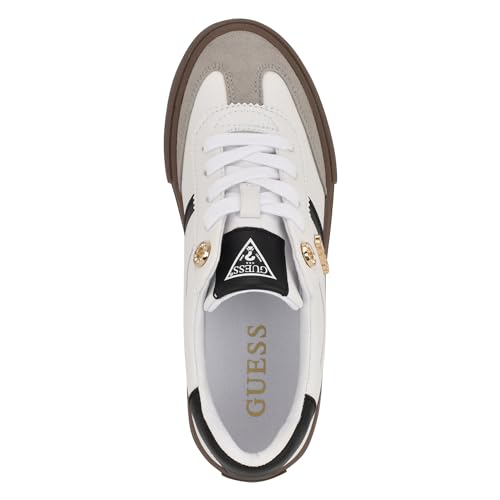 • The mixed textures lace up to make a sporty look in the Loui sneakers by Guess. With a detailed top eyelet, this t-toe sneaker provides a versatile style to wear on your casual days. Est. 1981, Guess is a global lifestyle brand and a symbol of a young, adventurous lifestyle.