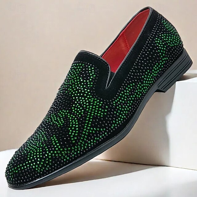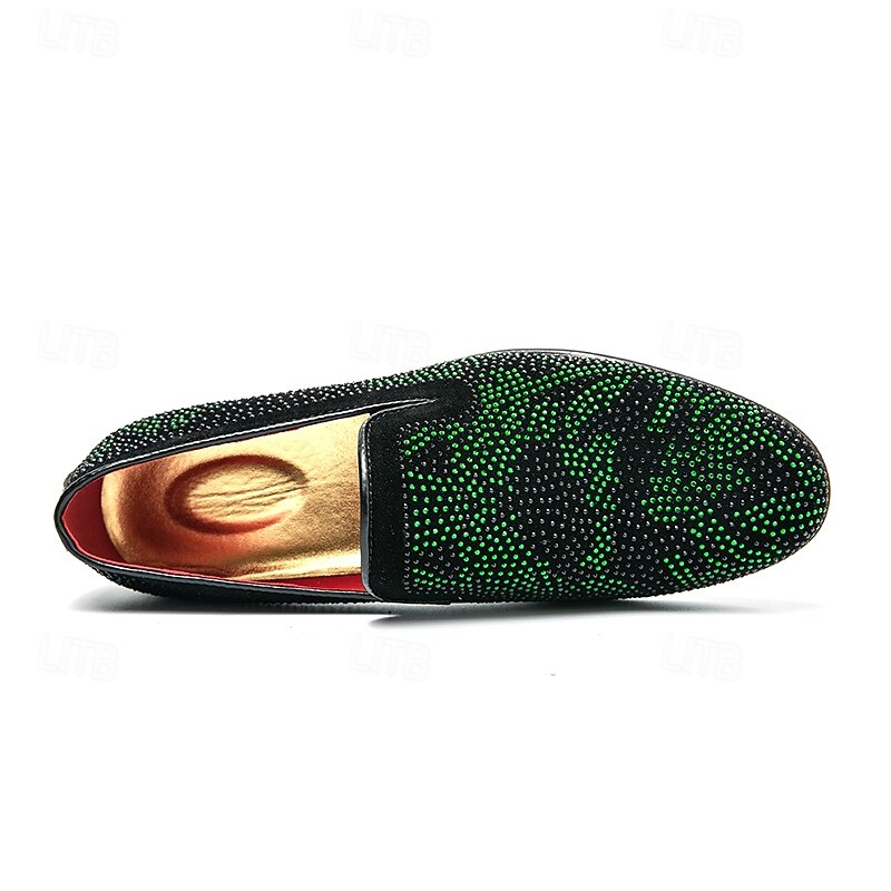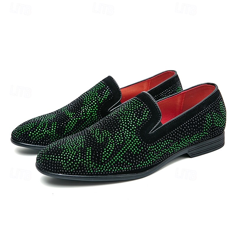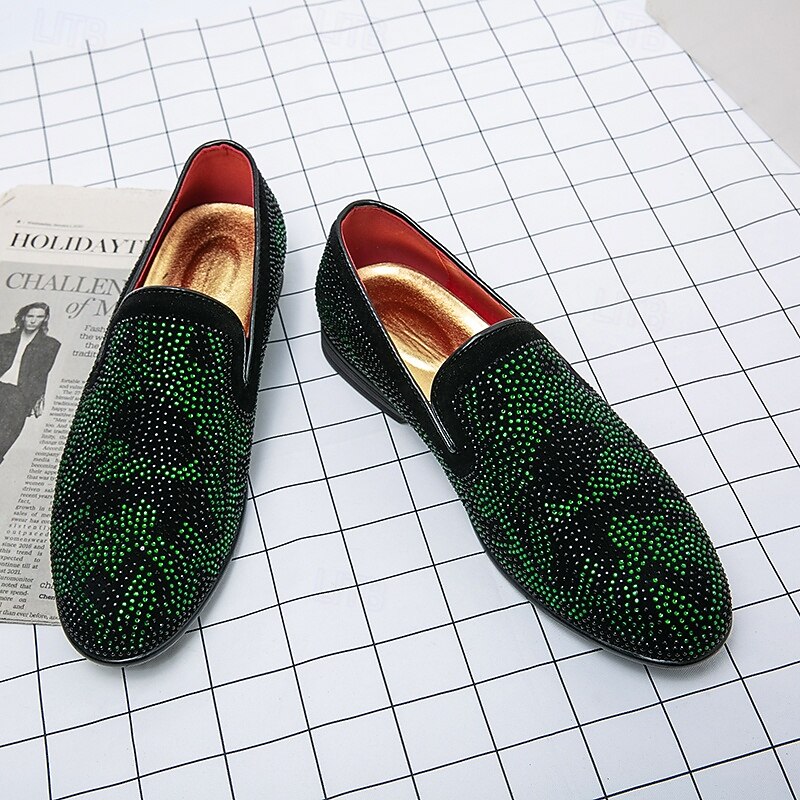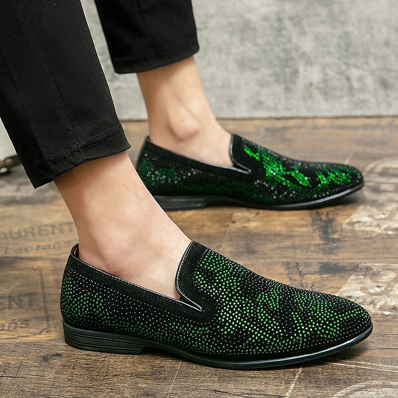 HOT ! Men's Prom Shoes - Green and Black Snakeskin Pattern Velvet Loafers for Bold Fashion Statements