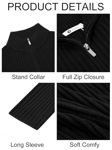 Runcati Mens Full Zip Cardigan Sweater Casual Mock Neck Ribbed Knitted Winter Chunky Sweaters 1