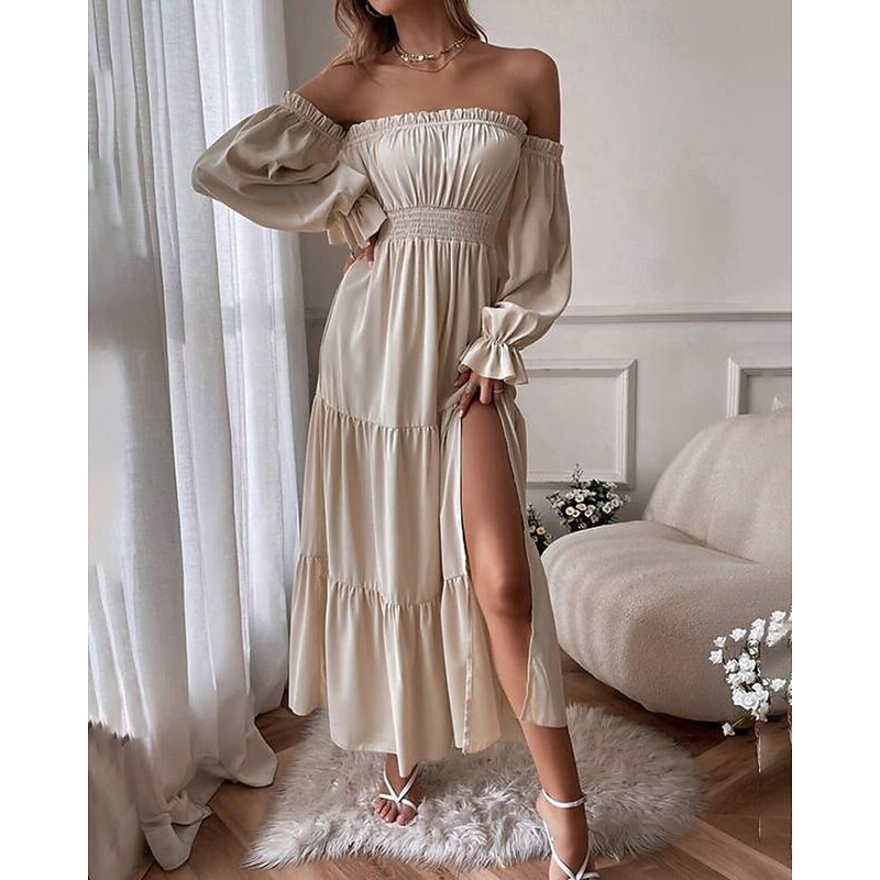 Women's Long Dress Maxi Dress Black Dress Cocktail Dress Formal Dress Peplum Dresses Fashion Modern Outdoor Vacation Holiday Regular Fit Plain 3/4 Length Sleeve Off Shoulder Black Red Beige Summer 8