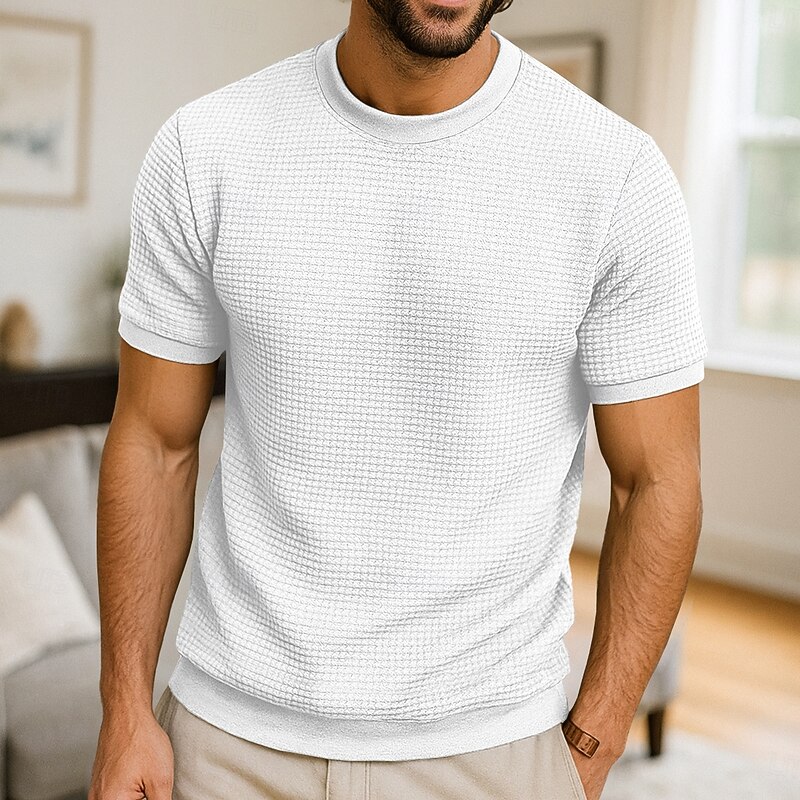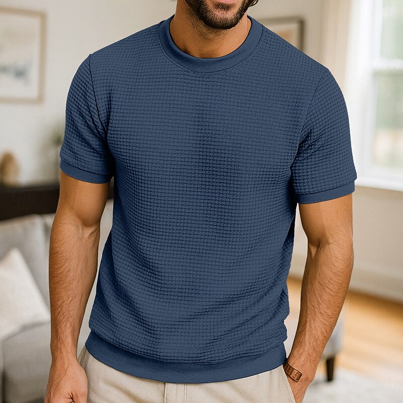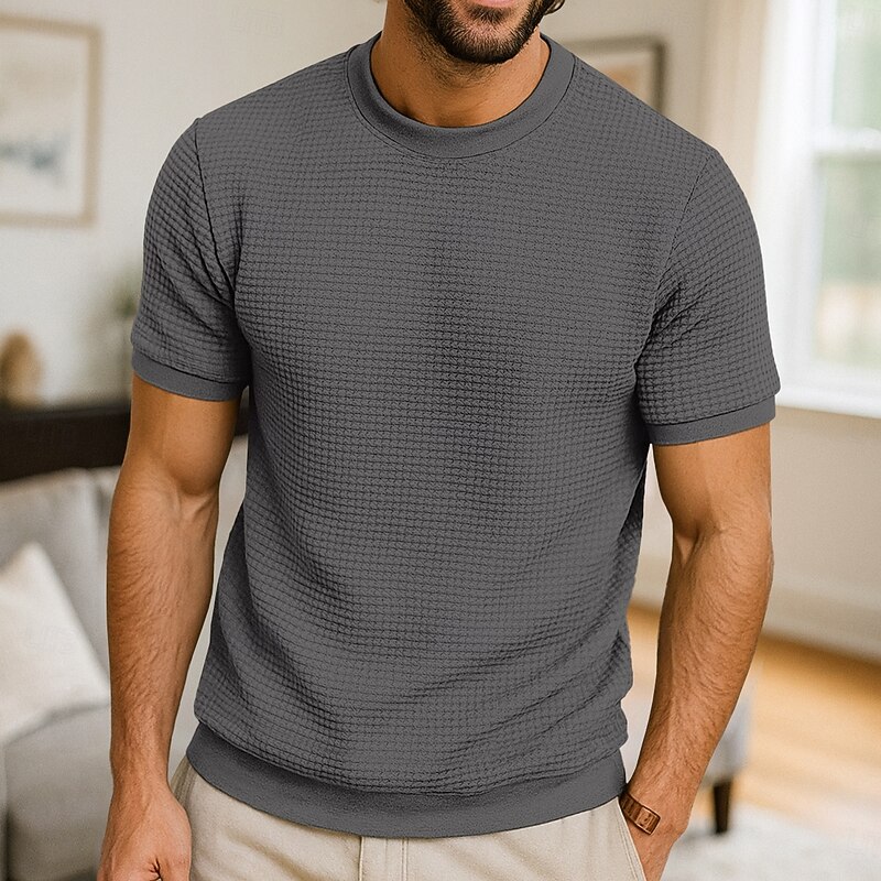 More information about Men's Waffle Knit Tee Tee Top Short Sleeve Crew Neck Summer All Seasons Color Block Textured Fashion Designer Casual Buttons Basic Outdoor Casual Daily Army Green Dark Grey Black Top Tee for Men