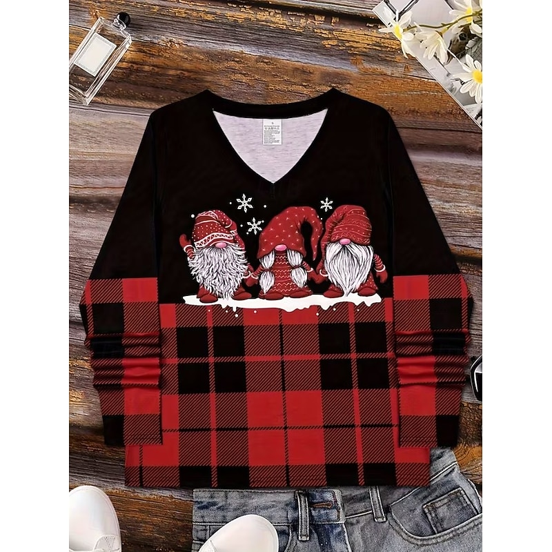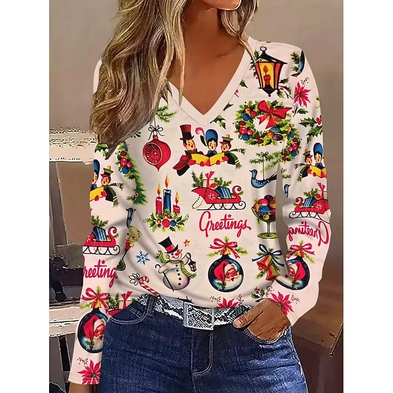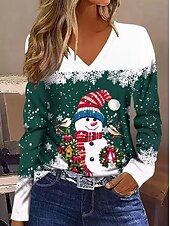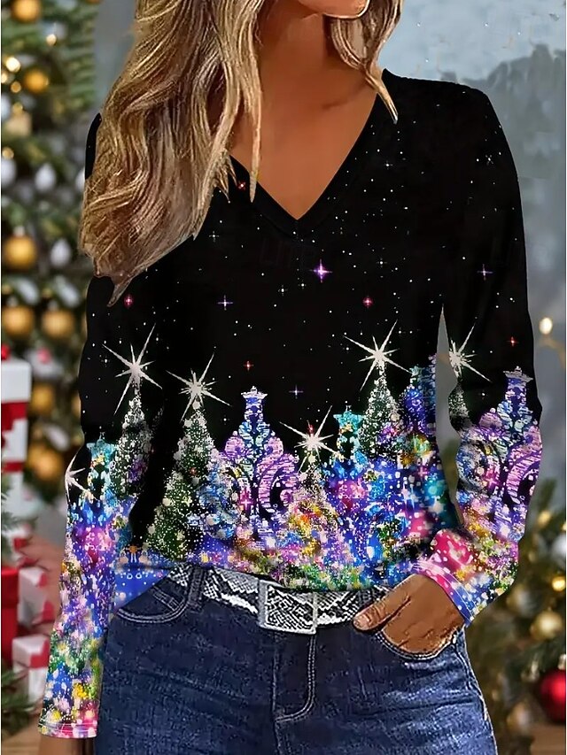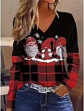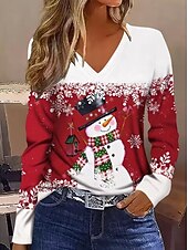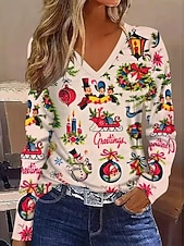 More information about Christmas Women's T Shirt Graphic Christmas Vintage Stylish Classic Long Sleeve V Neck Regular Tops Daily Print Black Wine Red Blue Green Spring Fall Winter
