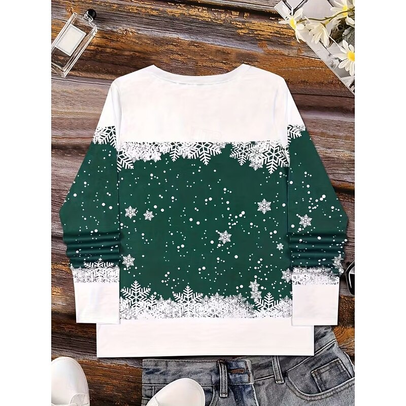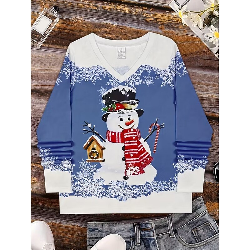 HOT ! Christmas Women's T Shirt Graphic Christmas Vintage Stylish Classic Long Sleeve V Neck Regular Tops Daily Print Black Wine Red Blue Green Spring Fall Winter