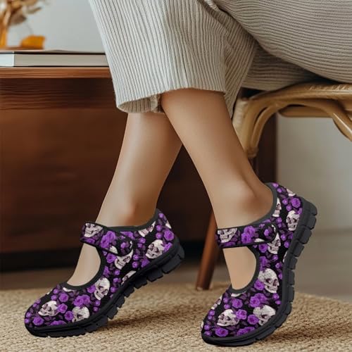 Skull Print Women's Mary Jane Shoes Slip Ons Breathable Cozy Shoes for Daily 5