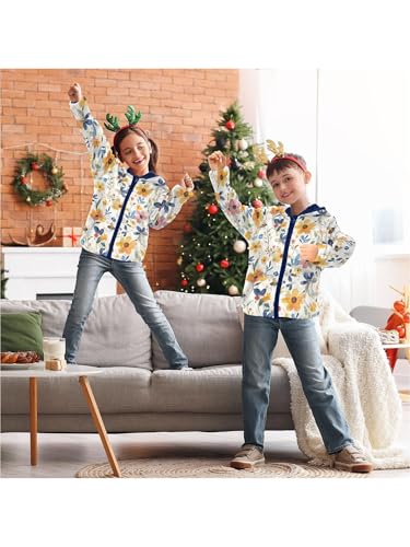 Watercolor Flower Bee Girls Fleece Jacket Girls Fall Jacket Boys Coats Zip Up Hoodie Children Sherpa Warm Outerwear 2-10T 5