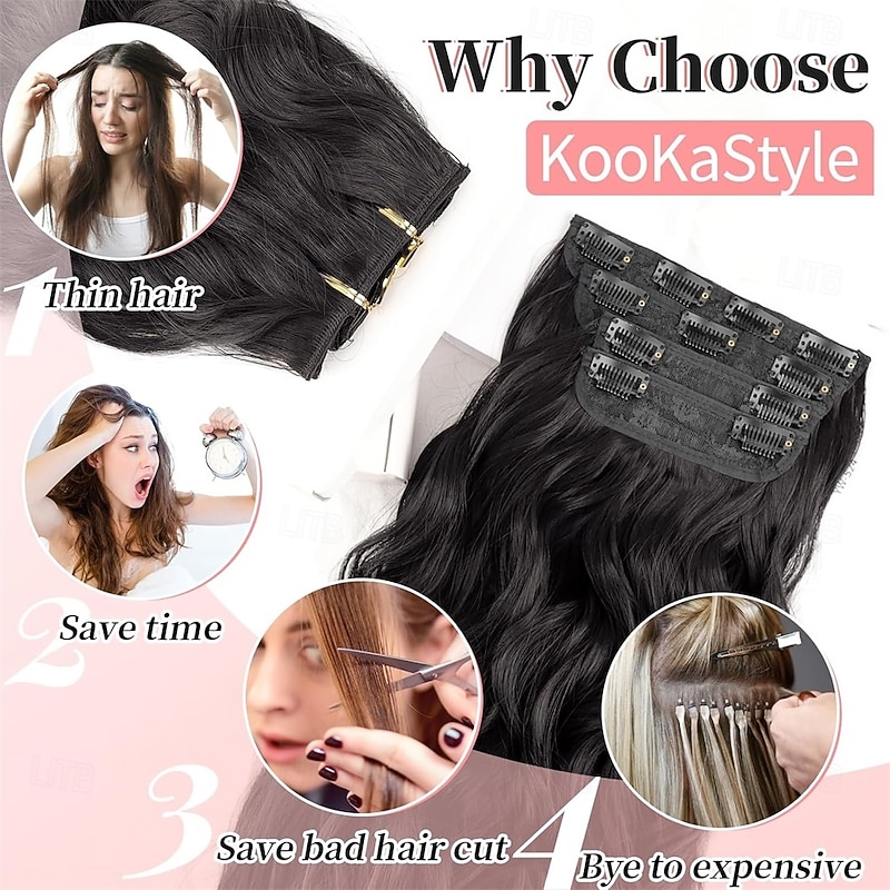 $26.99 - Clip in Hair Extensions 4PCS Long Wavy Synthetic Dark Black Brown Fiber Double Weft Natural Thick Hairpieces 24Inch for Women 2025. Shop for cheap Clip in Extensions online? Buy at lightinthebox.com on sale today!