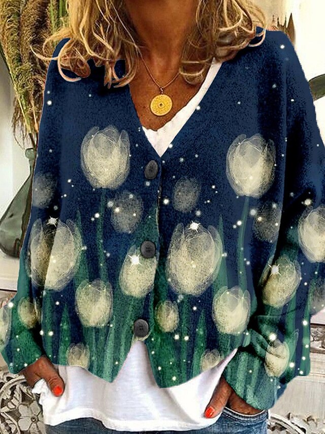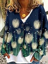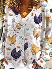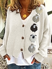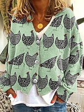 More information about Women's Coat Casual Jacket Warm Comfortable Print Fashion Modern Casual Animal Going out Weekend Single Breasted Regular V Neck Regular Fit Long Sleeve Outerwear White Green Light Grey Fall Winter