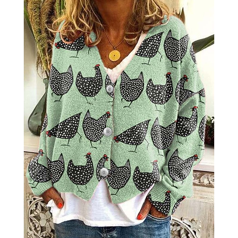 Women's Coat Casual Jacket Warm Comfortable Print Fashion Modern Casual Animal Going out Weekend Single Breasted Regular V Neck Regular Fit Long Sleeve Outerwear White Green Light Grey Fall Winter 6