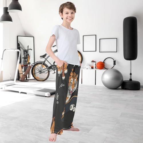 Boy's Pants Tiger Riding Skateboard Jogger Pants Elastic Waist Long Bottoms Trousers with Pockets 6-14 Years 6