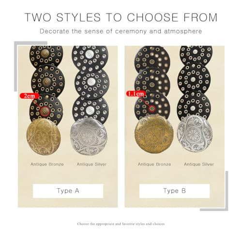 • MULTIPLE SIZES & ADJUSTABLE: Our belts are available in two styles: type A and type B, with different styles and diameters of metal decorations in the eyelet centers. Available in six sizes: 101cm, 115cm, 120cm, 130cm, 135cm and 150cm. Widely adaptable to different waist sizes. Dozens of holes in each disk to allow buckle stud to pass through, allowing you to adjust it for a comfortable fit. The belt is flexible and adjustable, easily coping with figure changes and different wearing effects.
