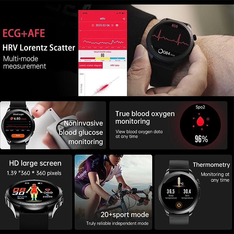 HOT ! iMosi E420 Smart Watch 1.39 inch Smartwatch Fitness Running Watch Bluetooth ECG+PPG Temperature Monitoring Pedometer Compatible with Android iOS Women Men Long Standby Waterproof Media Control IP68