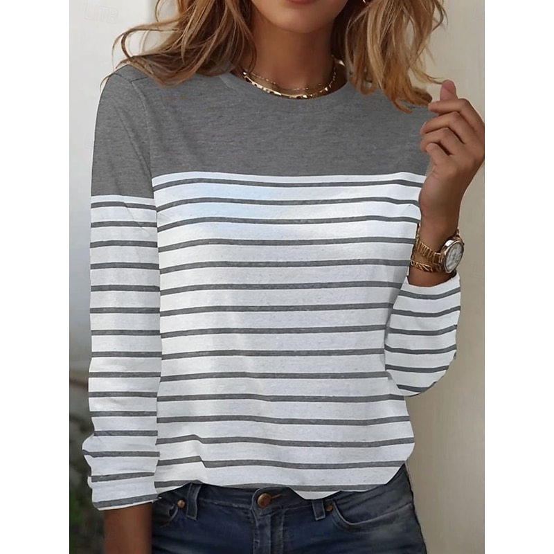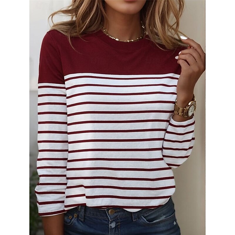 More information about Women's T shirt Long Sleeve Crew Neck Long Sleeve Tunic Striped Basic Round Neck Regular Tops Daily Weekend Print Black White Red Blue Gray Fall & Winter Prefall