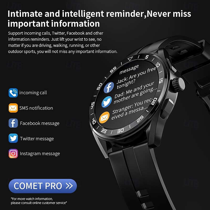 More information about LOKMAT COMET PRO Smart Watch 1.32 inch Smartwatch Fitness Running Watch Bluetooth Pedometer Call Reminder Activity Tracker Compatible with Android iOS Women Men Long Standby Hands-Free Calls Media