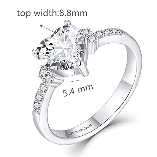 JO WISDOM Women Rings,925 Sterling Silver Heart Shaped Promise Engagement Rings for Women with 7.5mm 5A Cubic Zirconia Statement Rings for Women 5