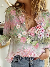 More information about Women's Shirt Blouse Floral Stylish Casual Long Sleeve Shirt Collar Regular Tops Daily Buttons Print Purple Green Summer Spring