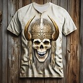 Men's Halloween Cool Skulls T Shirt Henley Shirt Short Sleeve Designer Retro Vintage Gothic Street Casual Daily Summer Spring All Seasons White Henley Henley T-Shirt 1