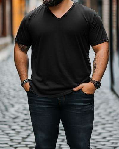 Ficerd 3 Pack Big and Tall V Neck Shirts for Men, Cotton Short Sleeve T Shirts Loose Casual Summer Basic Tee 3