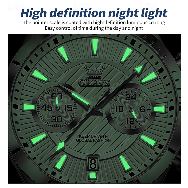 New Olevs Men'S Business Watch Chronograph Calendar 24-Hour Indicator Multi-Functional Quartz Watch Fashion Trend Waterproof Sports Watch 4