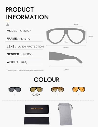 • Trendy Aviator Style – These Aviator sunglasses with an enlarged frame can fit more face shapes than regular small-sized Aviator sunglasses. Exquisite frame design with Diverse colors enhances your wearing comfort and makes you more eye-catching in the crowd. The stylish chic sunglasses are the must-have accessory to accent all season's outfits.
