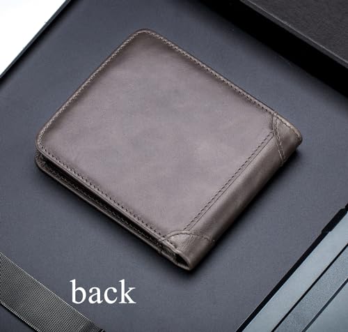 BULLCAPTAIN Men's Genuine Leather RFID Trifold Wallet with 2 ID Window Credit Card Holders Wallets (grey) 4