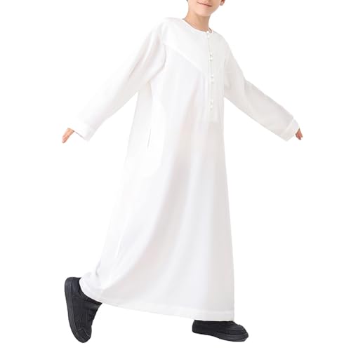 Kids Arabic Thobes for Boys Muslim Thobe Long Sleeve Kaftan Islamic Prayer Dress Kids Dubai 𝐑obe Ramadan Eid Outfit