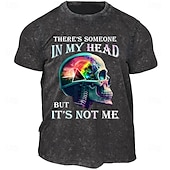 More information about Men's Washed Black Graphic T-Shirt: 'Someone In My Head But It's Not Me' Humorous Skull Design Short Sleeve