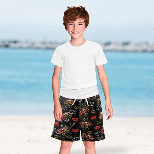 Boys Swim Trunks Quick Dry Monster Trucks Beach Board Shorts with Mesh Lining Youth Swimwear 2-12T 4