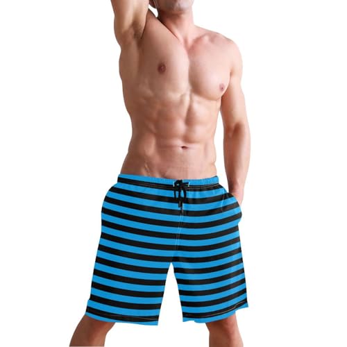 Neon Blue Black Stripe Men Short Shorts Elastic Mens Board Shorts Swimwear 8”/ 9” Long XL Size Casual wear 7