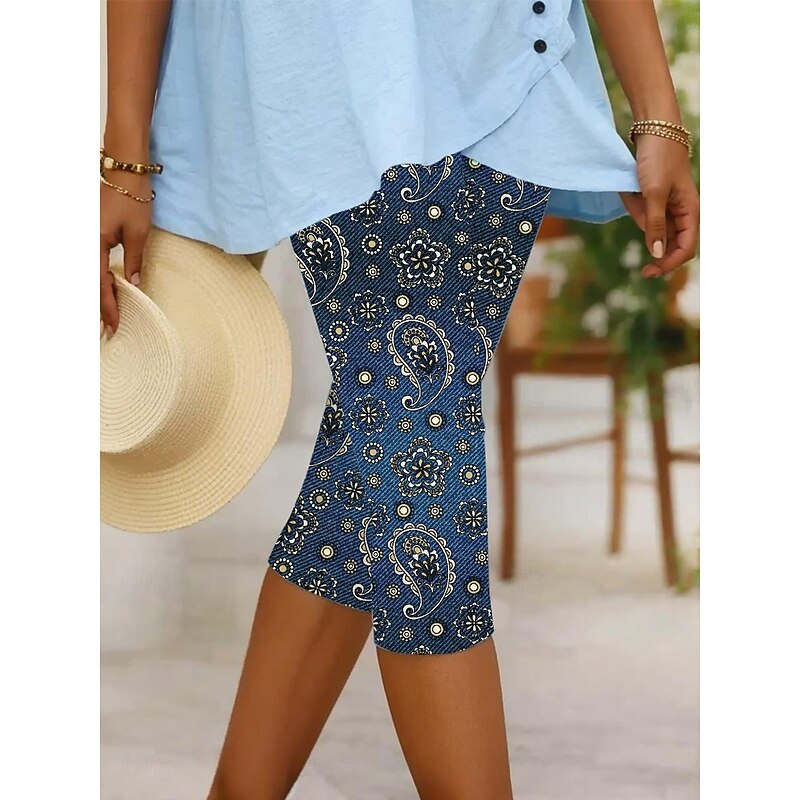 HOT ! Women's Leggings Capri Pants High Elasticity Vacation Vintage Fashion Calf-Length Mid Waist Floral Graphic Printing Breathable Soft Stretchy Formal Vacation Street Robin's Egg Blue Black Dark Navy