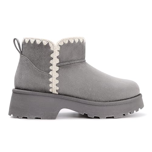 More information about Snow Mini Ankle Boots for Women: Stitch Shell-Shape Lined Chunky Heels Booties Platform Anti-Slip Comfortable Warm Winter Daily Outdoor Shoes in 2025