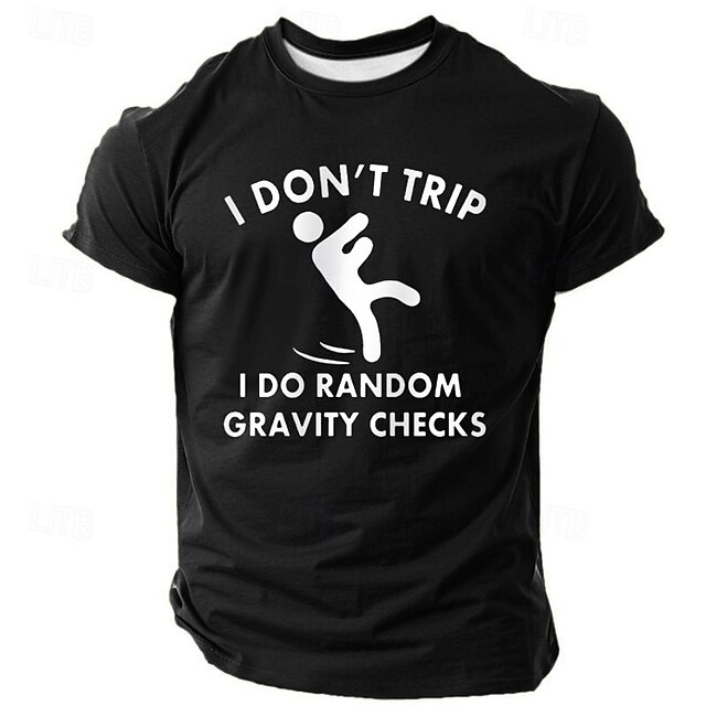 HOT ! Mens Graphic Tee I Don't Trip I Do Random Gravity Checks Short Sleeve Funny Shirt