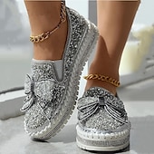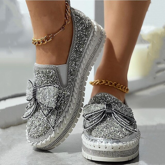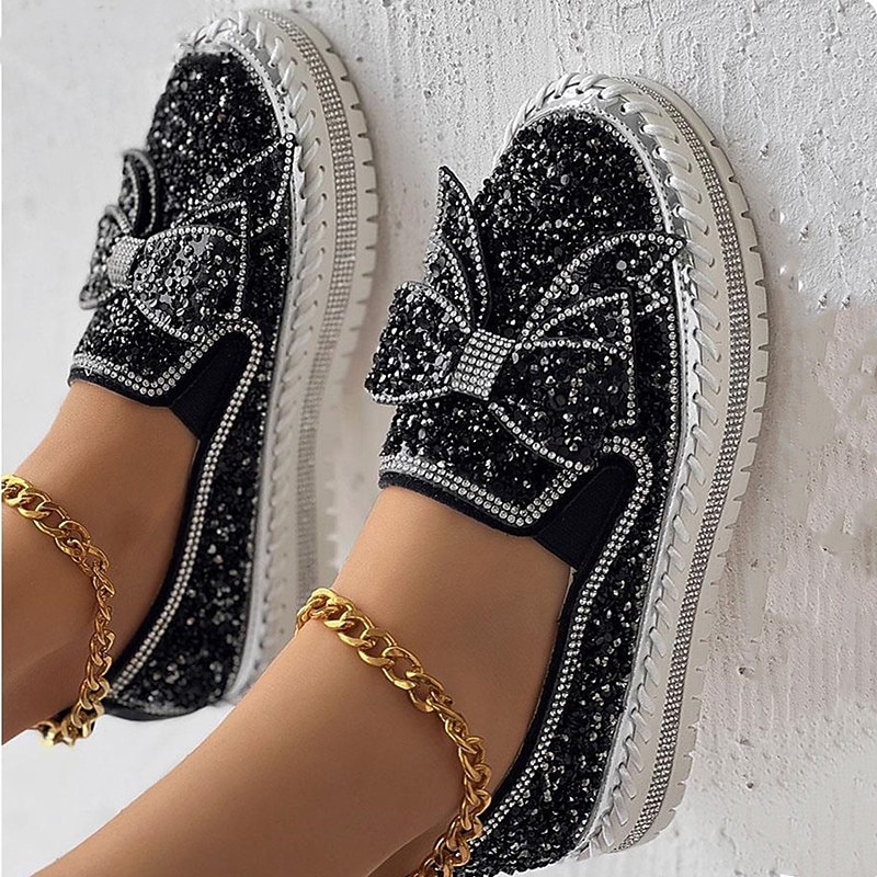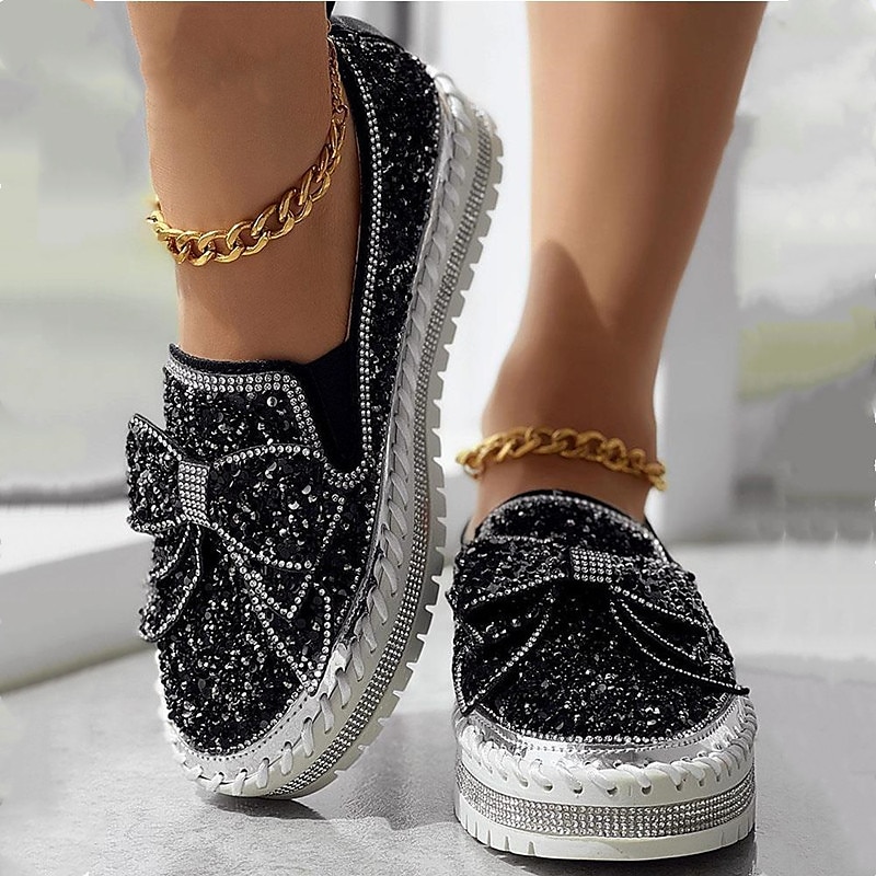 More information about Women's Sparkly Rhinestone Slip-On Sneakers – Glitter Bow Platform Loafers for Party, Casual & Streetwear Fashion