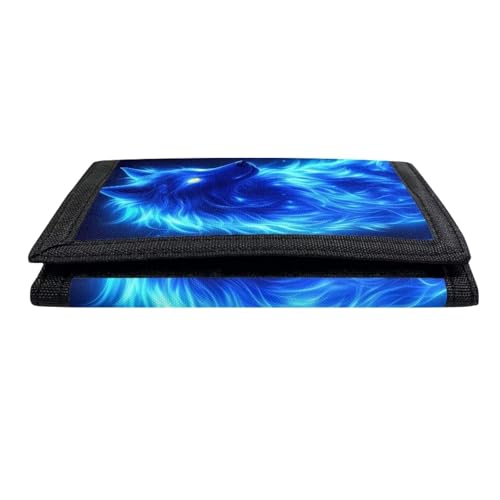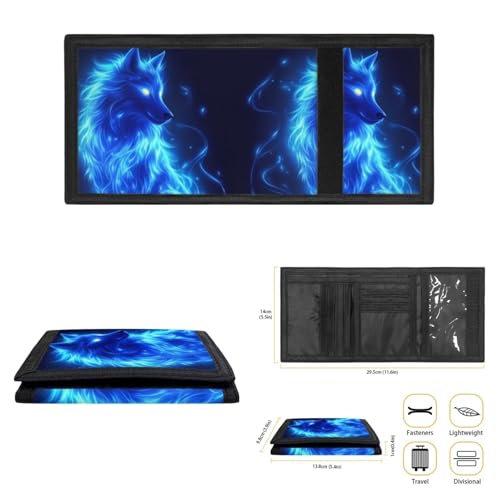 Dolyues Wolf Trifold Wallets Blue Kid Money Organizer for Teens Boys Outdoor Wallet with Magic Sticker Polyester Birthday Gift for Children 1