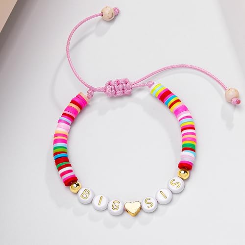 • PREMIUM MATERIAL: Our big sister bracelet made of colorful clay beads and handmade rope, which is not easy to break and is soft to wear. Nickel-Free, Lead-Free, 100% safe for sensitive skin. Hypoallergenic and comfortable to wear for a long period