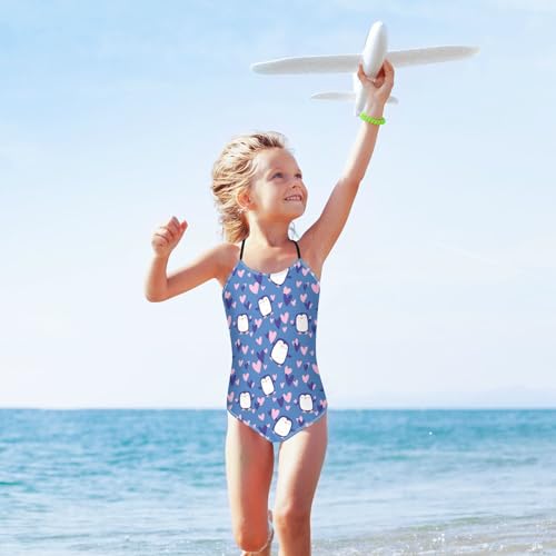 Hearts Penguin Girls One Piece Swimsuits Love Sport Halter Swimwear Beach Bathing Suit 5-6T Multi 5