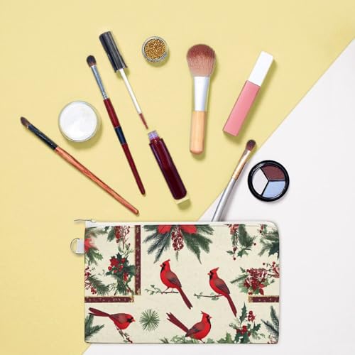 Cardinal Birds Christmas Holly Fashion Coin Purse Change Makeup Bag Canvas Pencil Pouch Travel 6