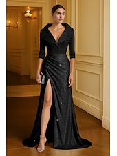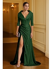 $149.99 - White Black Green Sequined A-Line Evening Gown Elegant Dress Formal Wedding Floor Length Long Sleeve Lapel Satin with Glitter Slit 2025 2025. Shop for cheap Sheath Evening Dresses online? Buy at lightinthebox.com on sale today!
