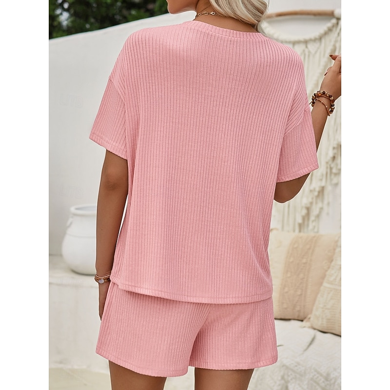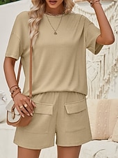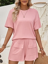 More information about Women's Fashion Streetwear Daily T Shirt Baggy Shorts Short Sleeve Crew Neck Plain Casual Daily Pink Khaki Summer Regular Fit