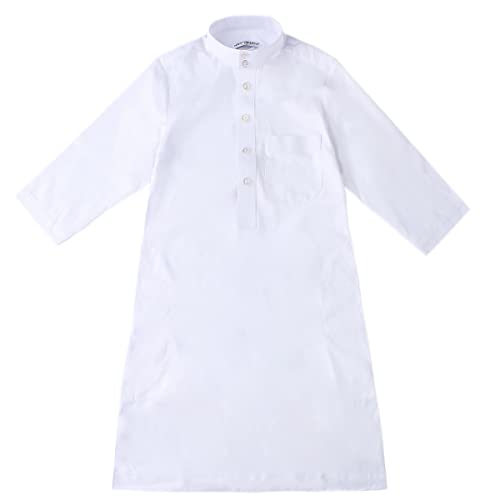 IDOPIP White Muslim Thobe for Boys, 4-5 Years, Modern Style, Solid Pattern, Wedding Occasion, Robe, Thobe with Pockets 6