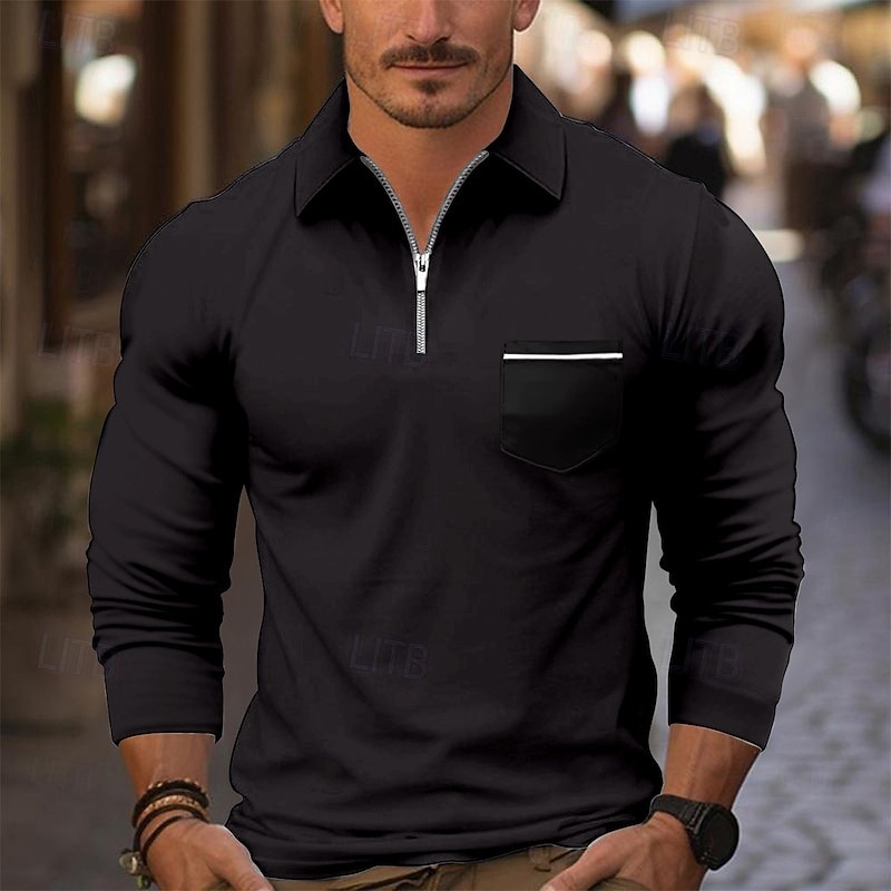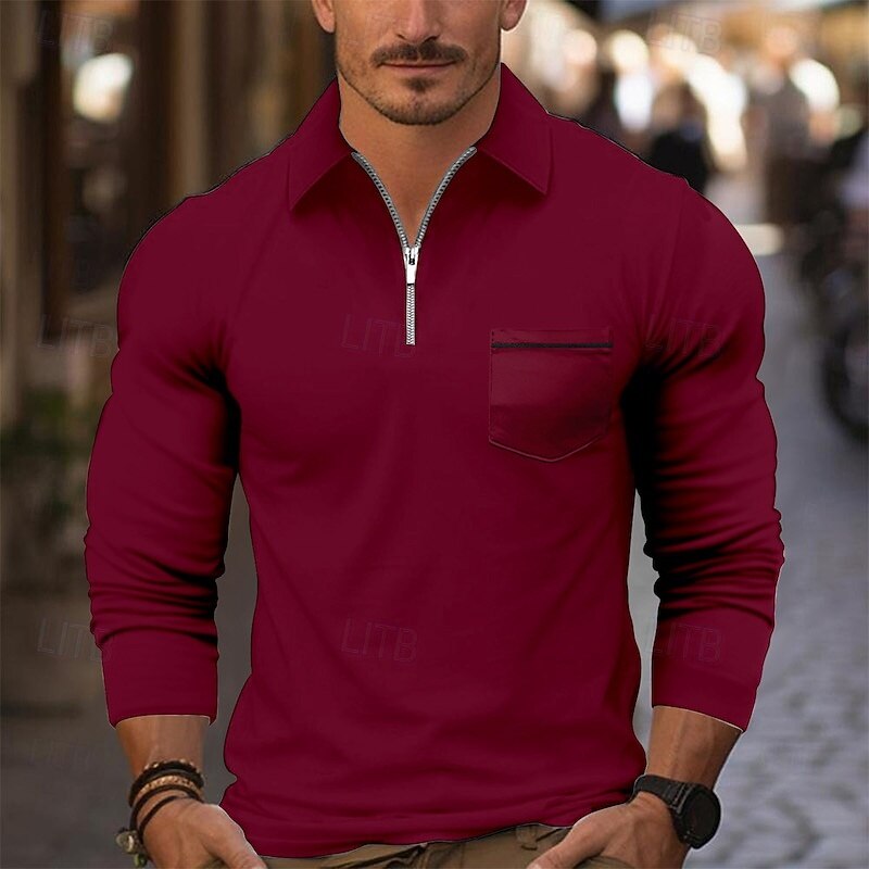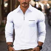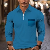 More information about Men's Quarter Zip Polo Golf Shirt Daily Holiday Quarter Zip Long Sleeve Fashion Modern Plain Pocket Spring Fall Regular Fit Black White Pink Wine Royal Blue Sky Blue Quarter Zip Polo