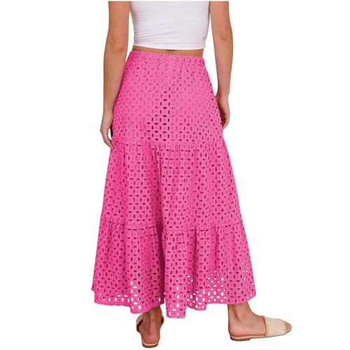 HOT ! Women's Flowy Maxi Skirts Boho Crochet Hollow Out Knit Flower Lace Skirt Casual Trendy Fashion Skirt with Pockets